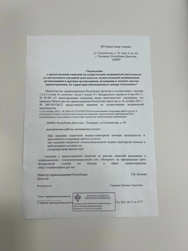 Омаев Амир Алиевич проводит ультразвуковые исследования